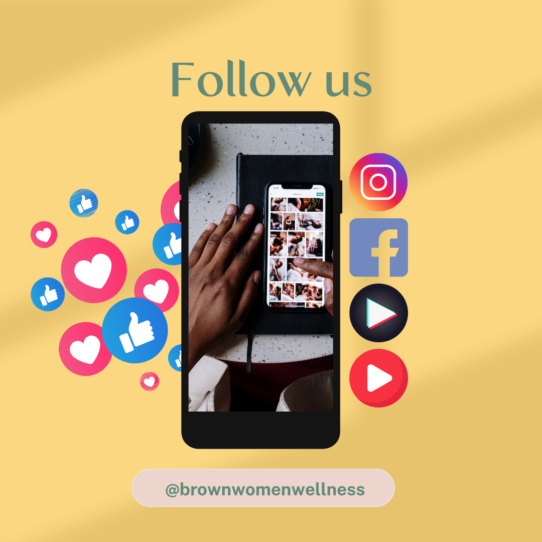 Join our community on social media for a daily dose of wellness, real talk, and inspiration crafted just for you. Follow Brown Women Wellness on Instagram, TikTok, and YouTube, where we share practical wellness tips, tasty recipes, stress-busting strategies, and plenty of laughs. Come connect with other amazing Black and Brown women who are thriving, learning, and growing together. We can't wait to welcome you! 🌿✨🤎